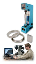Full-service metallurgy laboratory offers comprehensive on-site instrumentation. Lab services include sample preparation, metallograph examination, micro-hardness testing, Rockwell and Brinell hardness testing and tensile testing. And other elements that are overlaying the background.